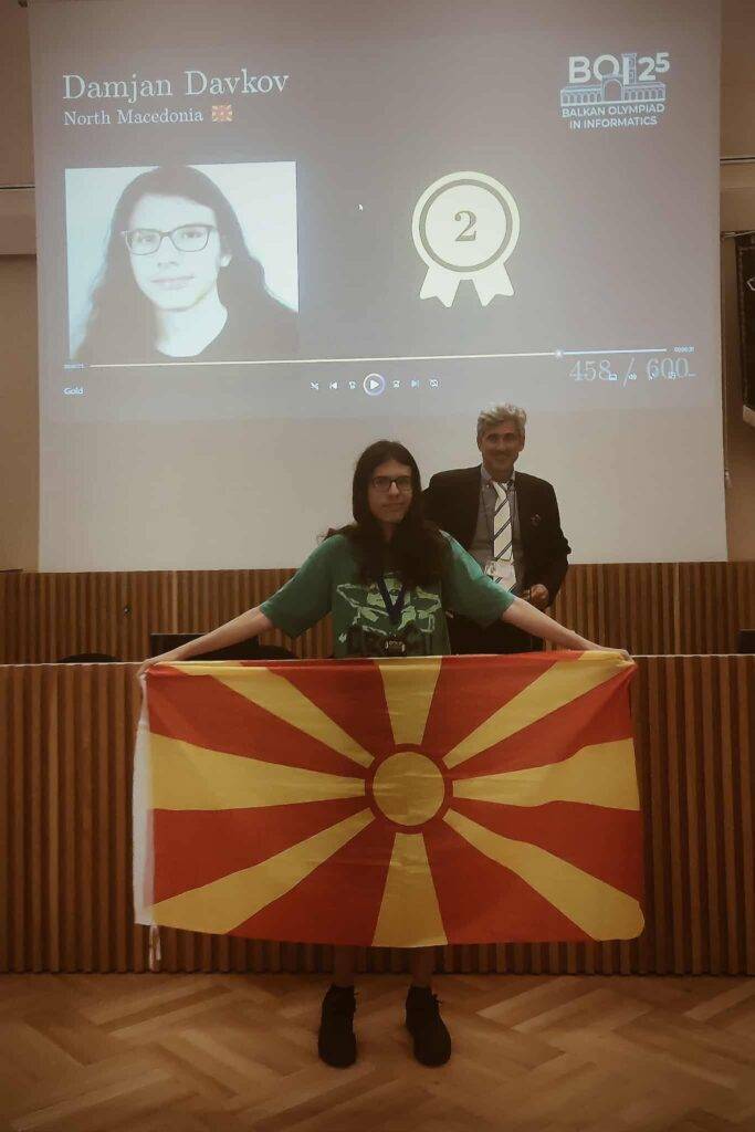 Уште едно извонредно претставување на македонските средношколци – информатичари, како продолжение на уште една успешна година за Македонија на олимпијадите по информатика. На 32-рата по ред Балканска олимпијада по информатика (БОИ 2025), која од 25-ти септември до 1-ви октомври се одржува во Удине, Италија, нашите ученици постигнаа нов значаен успех. Македонскиот тим на овој престижен меѓународен натпревар во програмирање, составен од учениците Дамјан Давков од Штип, Леонид Цуклев од Гевгелија, Виктор Максимоски од Гостивар и Владимир Грчев од Кочани, предводени од лидерите, д-р Емил Станков и Благојче Павлески од Факултетот за информатички науки и компјутерско инженерство (ФИНКИ), освои еден златен и два бронзени медали. Заедно со овие три, македонските ученици на меѓународните информатички олимпијади во текот на 2025 година досега освоија вкупно два златни, два сребрени, четири бронзени медали и четири олимписки пофалници – резултат достоен за респект, недостигнат и од многу поголеми држави од Македонија.